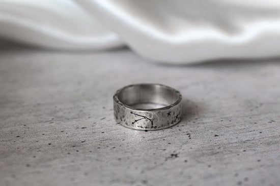 Grabado: La constelación de Aries está realizada a mano con buril, lo que asegura un diseño detallado y único en cada anillo.