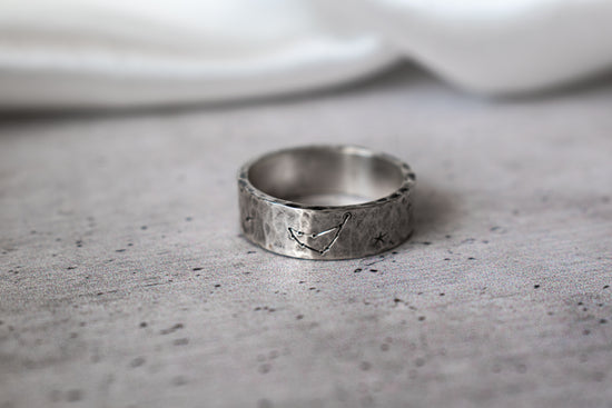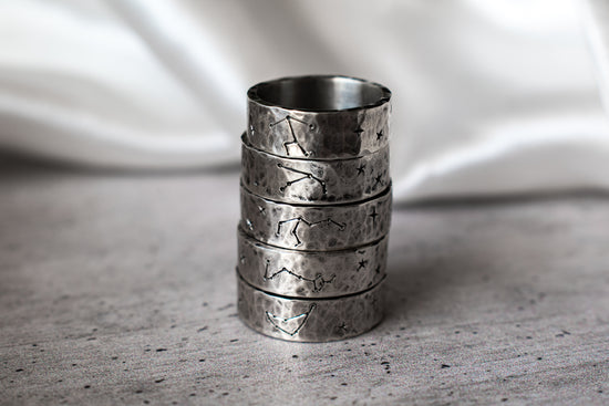 Grabado: La constelación de Capricornio está hecha a mano con buril, lo que asegura un acabado detallado y único en cada anillo.